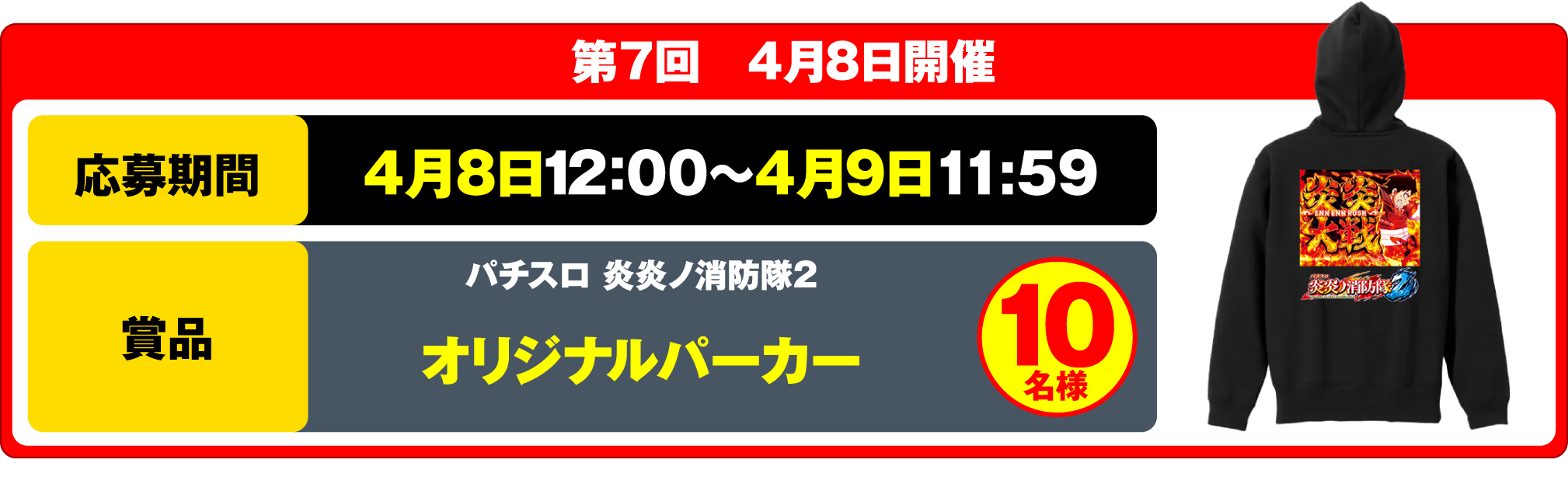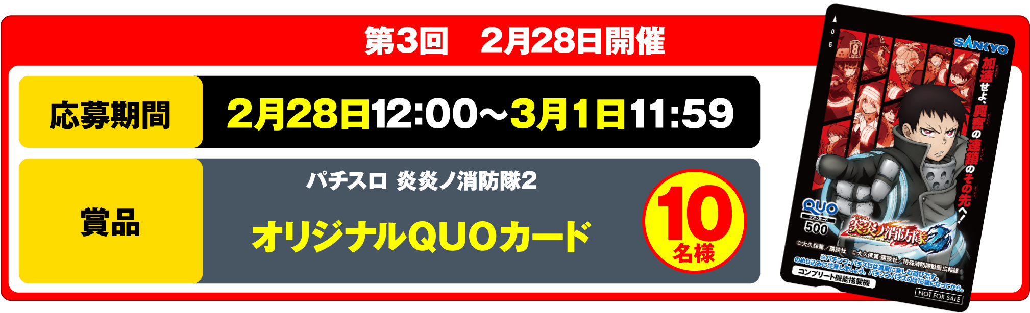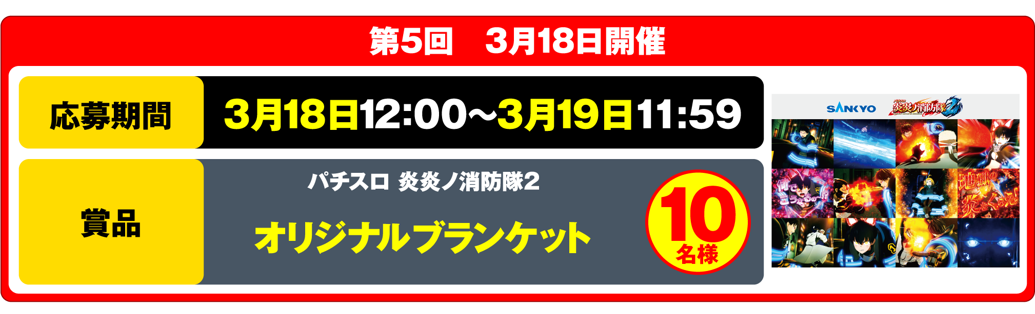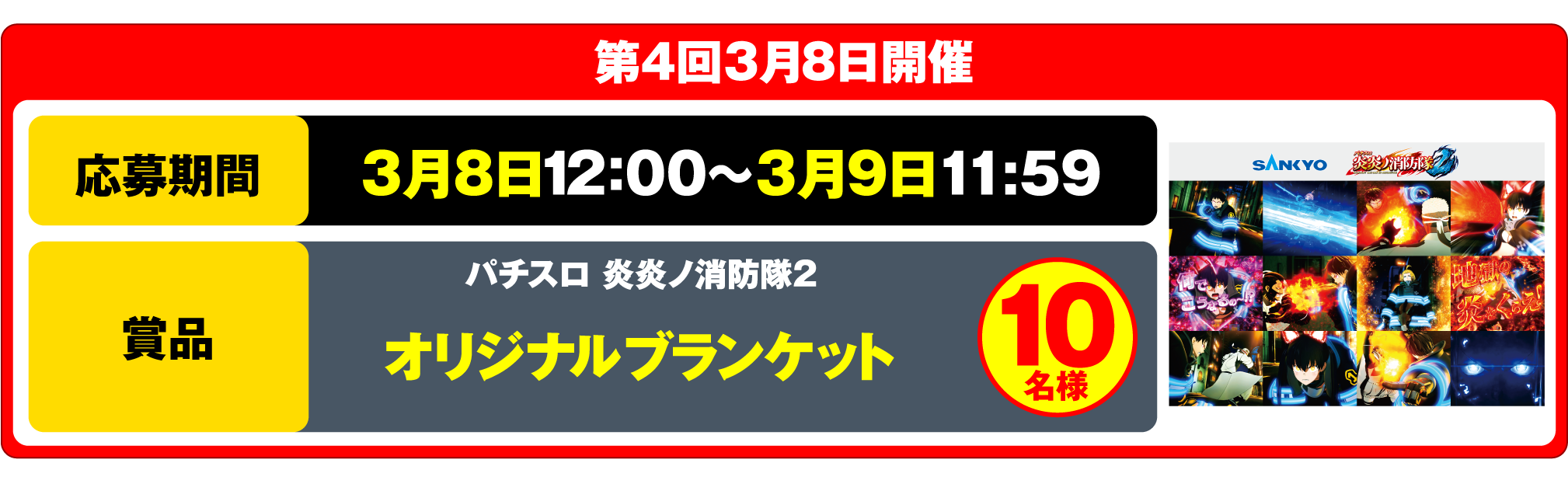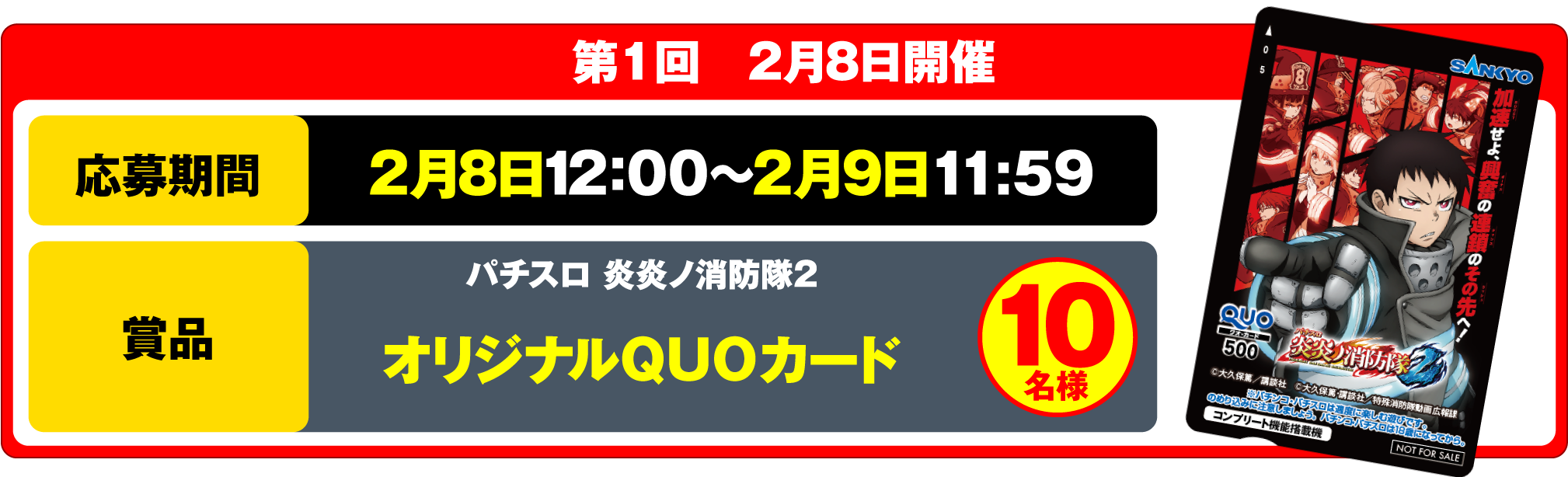 当選された方には、キャンペーン終了後に【公式】パチンコ・パチスロ炎炎ノ消防隊より、後日ダイレクトメッセージにてご案内いたします。